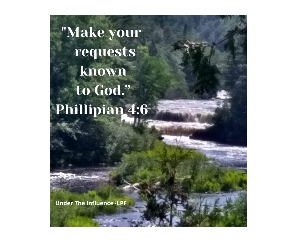 “Don’t worry about anything.” I began to hear and read that statement over and over. Sounds good, I thought, but how am I ever going to stop worrying? I had an enormous debt load that I couldn’t handle, legal trouble with my kids, a high-stress workload–nowhere to hide. Don’t worry He says– “on the contrary, make your requests known to God.” It suddenly hit me that the Word said to make MY requests known. It didn’t say my requests for other people, it didn’t specify only the really important ones, He wants to hear all of my requests– “by prayer and petition, with thanksgiving.” By prayer–He wanted me to clear my mind and focus on Him alone–then, petition, ask for guidance, a miracle, more faith, etc., and do it all with thanksgiving.